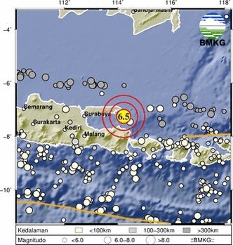Banyuwangi – Badan Meteorologi Klimatologi dan Geofisika (BMKG) melaporkan telah terjadi gempa bumi tektonik dengan magnitudo 6,5 pada Selasa malam (30/9/2025) pukul 23.49 WIB. Episenter gempa berada di koordinat 7,25 Lintang Selatan dan 114,19 Bujur Timur atau sekitar 47 km tenggara Sumenep, Jawa Timur, dengan kedalaman 13 km.